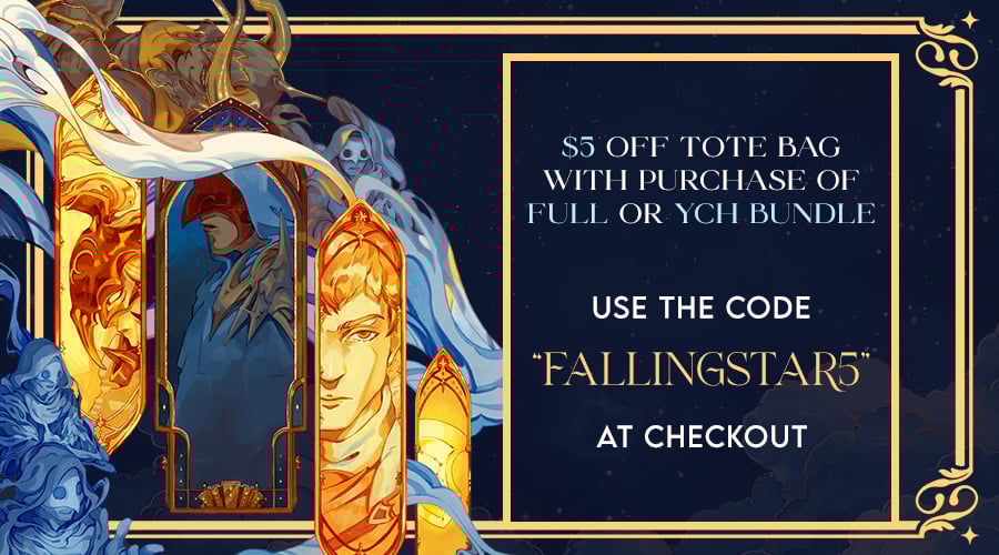 A $5 discount is available for the tote bag when purchased with a Full Bundle ("FLEETING MOMENT"). Use the code FALLINGSTARS5 at check-out.